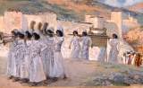 «Первым делом евреи под предводительством Иисуса атакуют Иерихон. В течение семи дней их войска маршируют вокруг городских стен, возглавляемые жрецами, несущими ковчег завета. На седьмой день войско обошло город семь раз, сопровождаемое играющими на трубах священниками. В определённый момент Иисус приказывает всему народу одновременно крикнуть, и тотчас стены города падают сами собой».