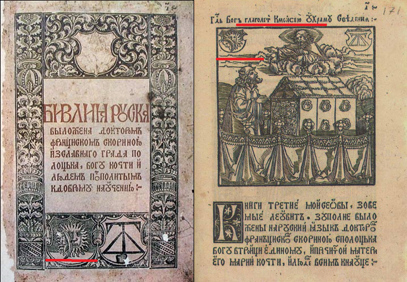 Франциск Скорина изобразил на Библии Руска, тот самый, Ковчег Завета, с которыми жрецы ходили вокруг Иерихона при Исусе Навине.
