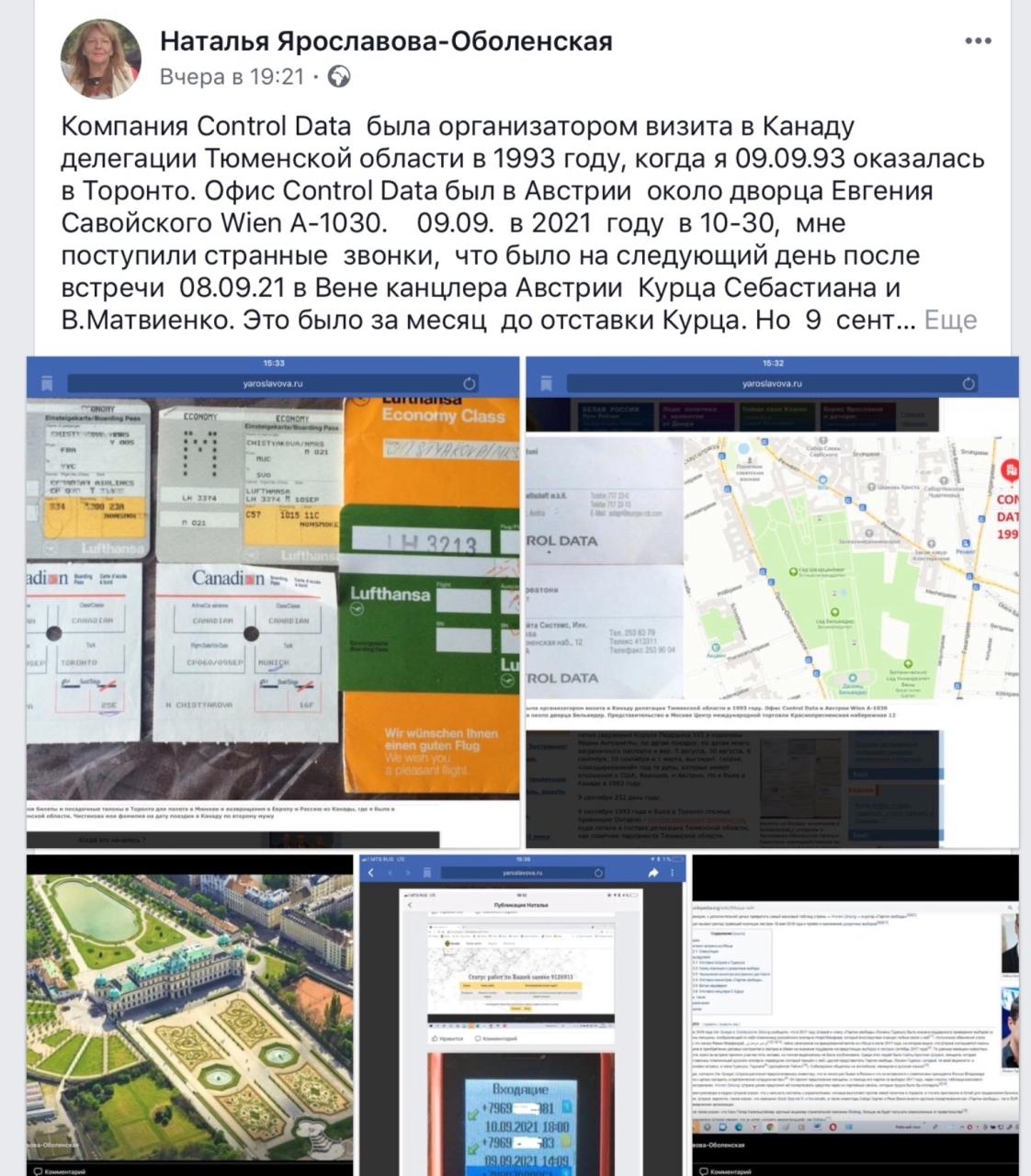 A-1030 Wien — в 1993 году это был адрес компании Control Date, организатора визита в Канаду делегации Тюменской области, в которой я урожденная Ярославова Наталья Борисовна была под моей фамилией Чистякова после регистрации второго брака 14.4.1991.