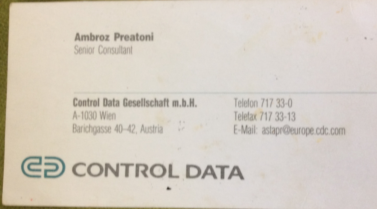 Wien А-1030 - офис в Австрии компании Control Date — организатора поездки в Канаду в 1993 году делегации Тюменской области, в которой я была как Советник Председателя Тюменского областного Совета, кандидат технических наук в сфере недропользованию ( "MS 1467. Калгари Тауэр 1967 года и 100 лет Канады. 1993 год: «Северное сияние» у озера святой Элоизы и я в Канаде, как советник парламента и кандидат наук")