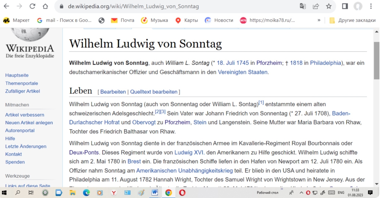 Ниже о швейцарском роде Зоннтаг (Баден-Вюртемберг), представитель которого Вильгельм Зоннтаг воевал за независимость Америки в составе полка 99 - Deux-Ponts короля Людовика XVI, а его сын Джордж Сайк Зоннтаг по протекции французского адмирала Траверси - земляка Жозефины Богарне поступил на службу в российский флот, стал капитаном и начальником карантина порта в Одессе. О