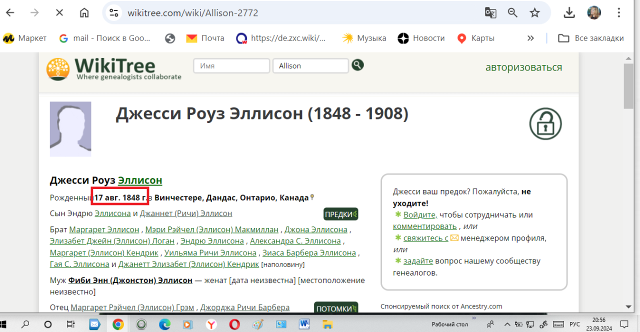 Даты рождения членов семьи Эллисон