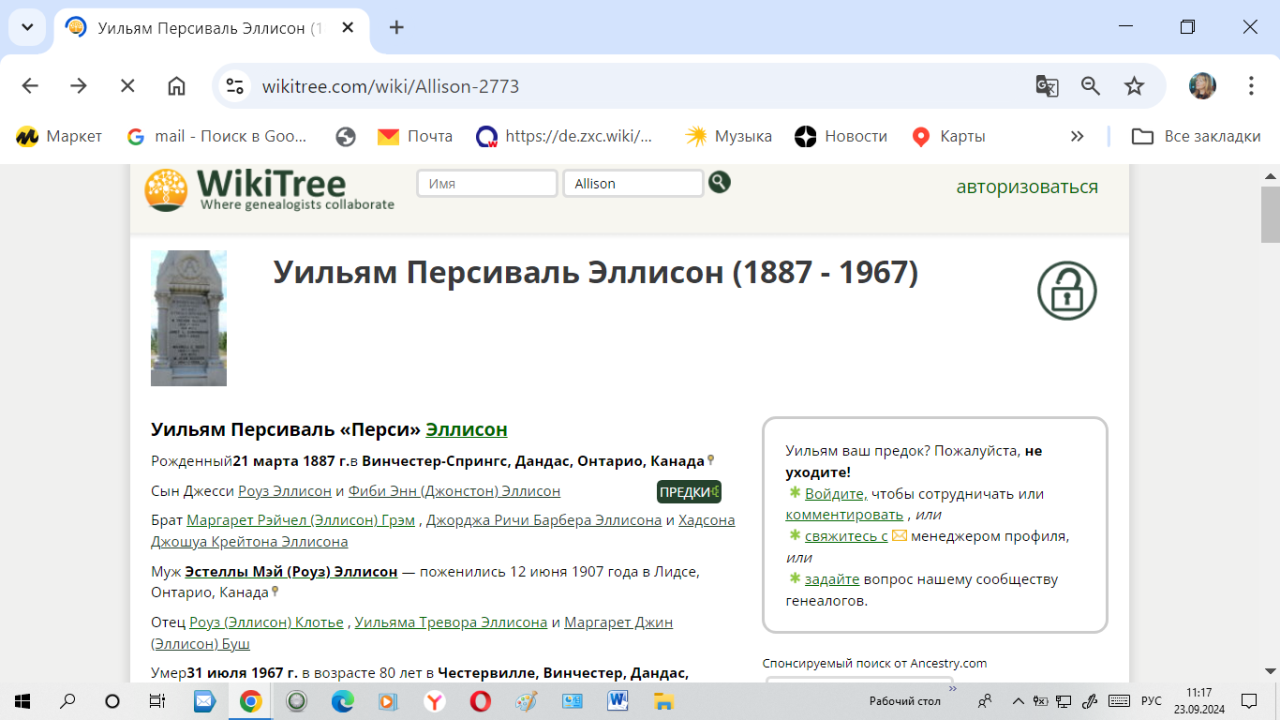 Была ещё сестра Маргарет Эллисон в браке Грэм, родившаяся 7 апреля 1876 г.в Осгуде, Карлтон, Онтарио, Канада, умерла в 1945.