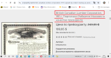 «Красиво выгравированный сертификат от British Canadian Lumber Corporation, выпущенный в 1911 году. Этот исторический документ имеет богато украшенную рамку с виньеткой завода по переработке древесины. Этот предмет подписан лично президентом компании (Робертом Маккеем)....»
