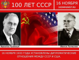 16 ноября 1933 года президент США Рузвельт и посол Литвинов пописали документы о дипломатических отношениях США и СССР.