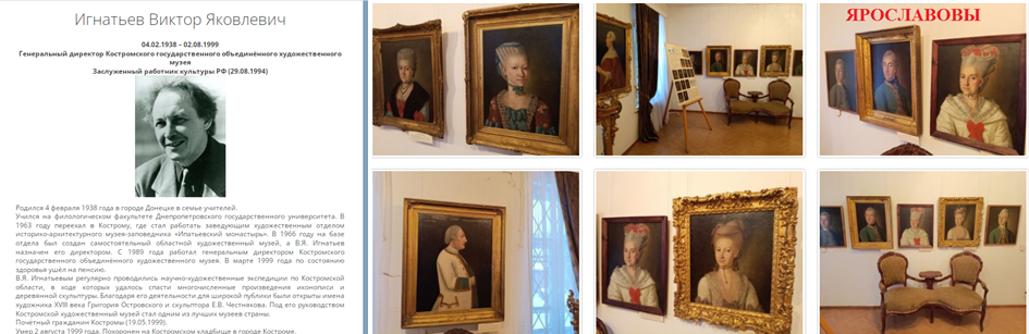 В 1972 году именно Игнатьевич Виктор Яковлевич директор Костромского музея нашел в портреты Черевиных и Ярославовы из усадьбы "Нероново" в запасниках музея Солигалича ( Игнатьев Виктор Яковлевич)
