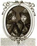Иоанн V был сыном царицы М.Милославской (ММ). Петр I был сыном царицы Н.Нарышкиной (НН). Это сыновья от первой - М.Милославской и второй - Н.Нарышкиной жен царя Алексея Михайловича.