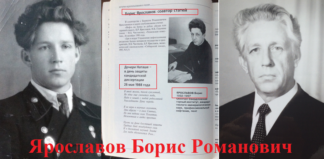 Первый раз в ВАК фамилия Ярославовых прошла, когда в 1970 (1971?) защитил диссертацию в Уфе мой отец Ярославов Борис Романович, и его документы поступили на союзный уровень в Высшую аттестационную комиссию (ВАК) , напомнив о фамилии Ярославовых. Одно дело, когда в провинции сидит какой-то забывший себя Ярославов. Другое дело, когда во времена сложные для защиты диссертации, Ярославов Борис Романович (д.р. 27.10.1932) защищает кандидатскую диссертацию, выходит на союзный уровень и делает прорыв.