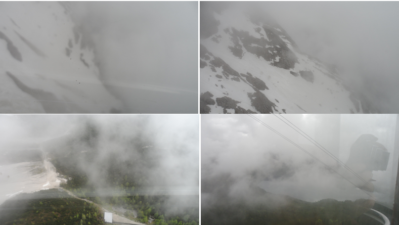 Лето 5 июня 2016 года снег и метель на горе Цугшпитце, куда поднялась я Ярославова-Оболенская Наталья Борисовна по этой оригинальной канатной дороге Эбзее 1963 года.