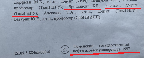 За день до его смерти 15 сентября 1997 года в сборнике Тюменского государственного нефтегазового университета были опубликованы две статьи моего отца Ярославова Бориса Романовича кандидата геолого-минералогических наук, доцента кафедры Разработки и эксплуатации нефтяных и газовых месторождений, как мой отец Ярославов Борис Романович указан в составе редакционной коллегии этого научного сборника 1997 года Тюменского государственного нефтегазового университета