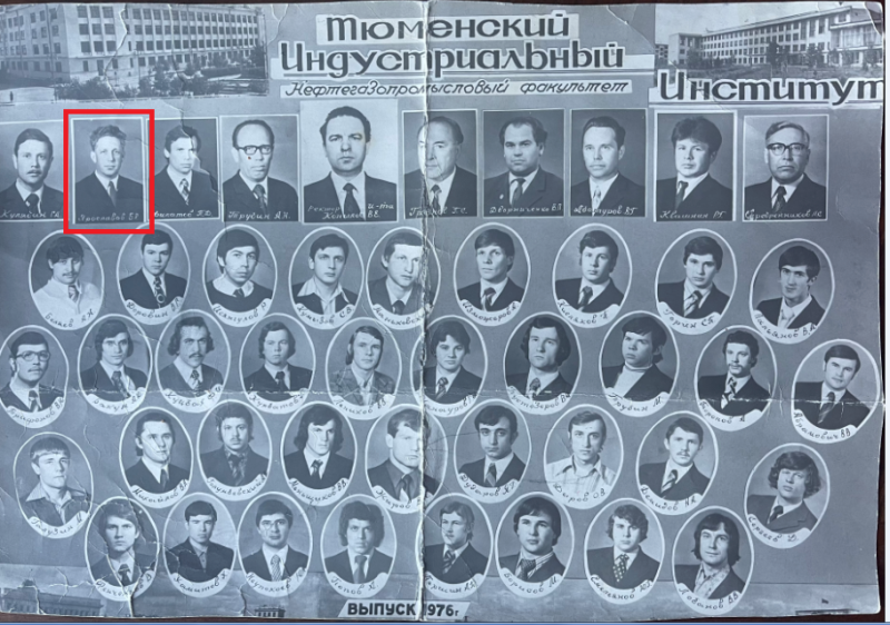 • 1976 год мой отец Ярославов Борис Романович кандидат геолого-минералогических наук, доцент кафедры Разработка и эксплуатация нефтяных и газовых месторождений, как преподаватель на фотографии выпускников 1976 года Тюменского индустриального института, нефтепромыслового факультета