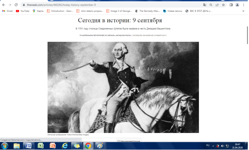История названия 9 сентября 1791 года столицы США именем Д.Вашингтона (22.2.1732) — это отдельная история
