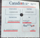31.8.93 из Франкфурта-FRA я летела в Калгари-YYC Канада рейс CP70 место 23А,gate -терминал B34 Canadian Airlines