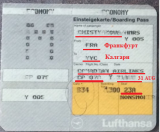 Мой посадочный талон из Франкфурта-на-Майне в Калгари 31 августа 1993 года. Из FRA-Франкфурт в YYC — Калгари, рейс CP 70 терминал B34, место 23А некурящая. Самолет Canadian Airlines.Некурящая NONSMOKE