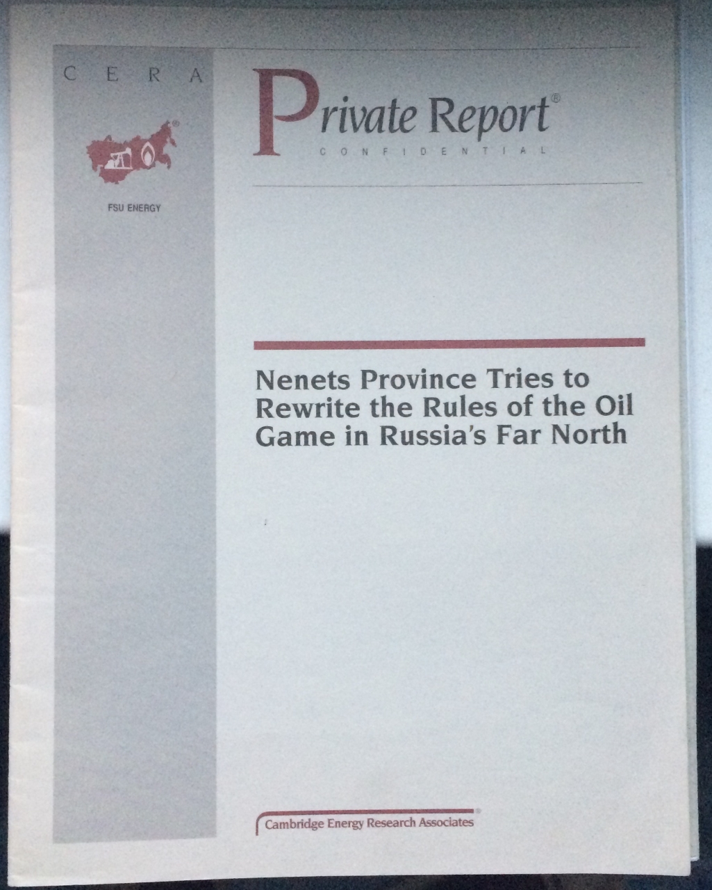Март 1998 год: Privat Report «Nenets Province э,Tries to Rewrite the Rules of the Oil Game in Russia’s Far North» - « Ненецкая область пытается переписать правила нефтяной игры на Крайнем Севере России».