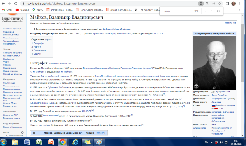 42-й год смерти В.В.Майкова руководителя одела древних рукописей РНБ, где хранятся Дневники Ярославова А.Т., которые В.В.Майков вывозил из Нежина (Украина).