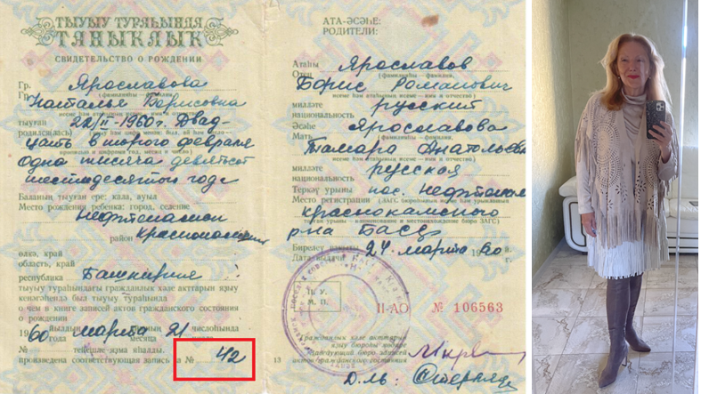 21 марта и 24 марта 1960 года — это даты от ЗАГС Нефтекамска Краснокамского района Башкирии, который сделал запись № 42 о моем урожденной Ярославовой Натальи Борисовны рождении