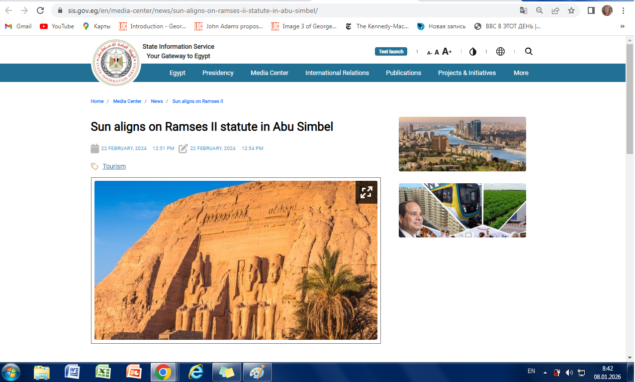 22 февраля в день рождения Рамзеса II ежегодного луч света освещает лицо фигуры Рамзеса II в Асуан.