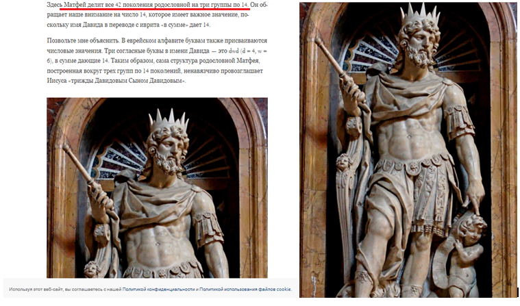 Здесь Матфей делит все 42 поколения родословной на три группы по 14"