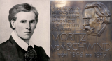 «Художник Мориц фон Швинд аристократического происхождения, сын императорского рыцаря, создал проект росписи внутренних помещений королевской резиденции — замка Хоэншвангау, повествующей о последних эпизодах жизни Карла Великого.Он создал для стен замка Хоэншвангау декорации из «Песни о Нибелунгах» и по «Освобожденному Иерусалиму» Тассо. Затем последовали заказы из Саксонии и Бадена, которые принесли ему известность. В 1839—1844 годах Мориц фон Швинд жил и работал в Карлсруэ. В 1839 году в Новой академии Карлсруэ ему было поручено воплощение на фреске идей, высказанных Гёте. Изучал сокровища Манчестера в Англии. Он разрабатывал эскизы для витражей в соборе Глазго. Друг Шуберта с юности. Работал во Франкфурте-на-Майне, где его памятная доска"