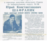 Упоминание Ю.К.Шафраника есть в сохранившихся у меня Ярославовой-Оболенской Натальи Борисовны, экс Чистяковой Натальи Борисовны, документах по моей поездке в Канаду в августе - сентябре 1993 года.