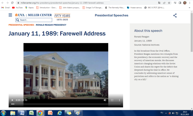 Farewell Address to the Nation.11 января 1989 года, Прощальное обращение президента США Рональда Рейгана к нации