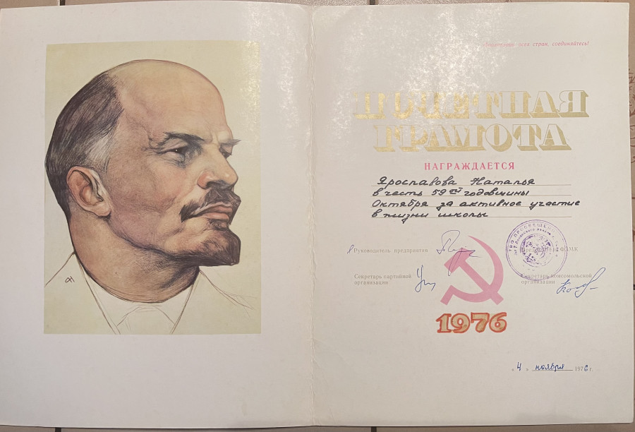 Странные даты 4 ноября, 25 мая, 17 января моих урожденной Ярославовой Натальи Борисовны (22.2.1960) грамот 1976 и 1977 годов в 10 классе школы № 7 Тюмени. Именно эти даты 4.11, 25.5, 17.1 громко звучат в последние годы.