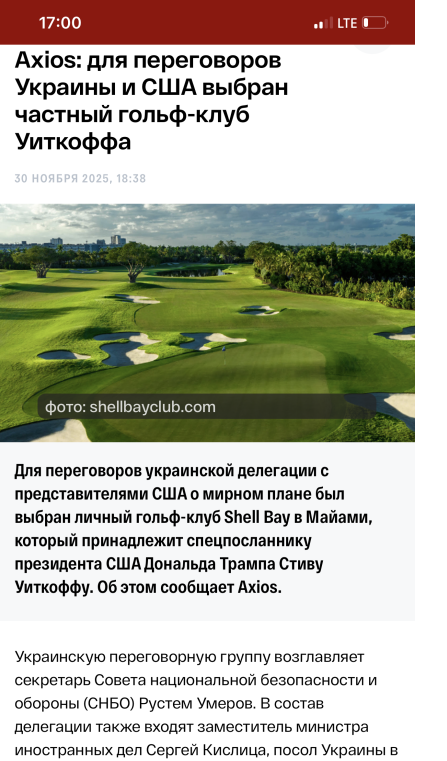 Именно в клубе Шелл Бей в Майями были назначены переговоры по Украине 30 ноября 2025 года. Об этом мои Ярославовой-Оболенской Натальи Борисовны комментарии: