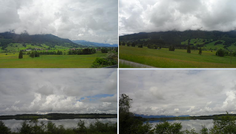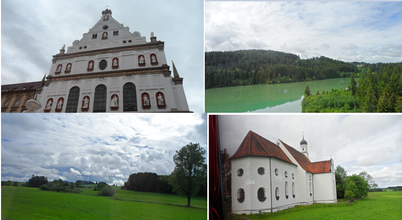 Поэтому первые фотографии, которые я Ярославова-Оболенская Наталья Борисовна, урожденная Ярославова Наталья Борисовна, поставила в этой моей статье: Мюнхен собор архангела Михаила и река Изар. Из многих кадров, которые я сделала 4 июня 2016 года по дороге в замок НойшванштайН, я выбрала кадры, которые отражают подъем в горы. Еще равнина. Но это уже дорога наверх, туда, где выше, туда, где горы. Я выбрала кадры над этими живописными равнинами Баварии, кадры, где низкое небо в этот день 4 июня 2016 года, не такой уже солнечный, но не пасмурный и не дождливый.