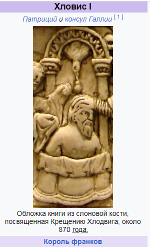 Из слоновой кости сделано изображение короля франков Хлодвига I Меровинга,который крестился под влиянием его второй жены Клотильды Французской.