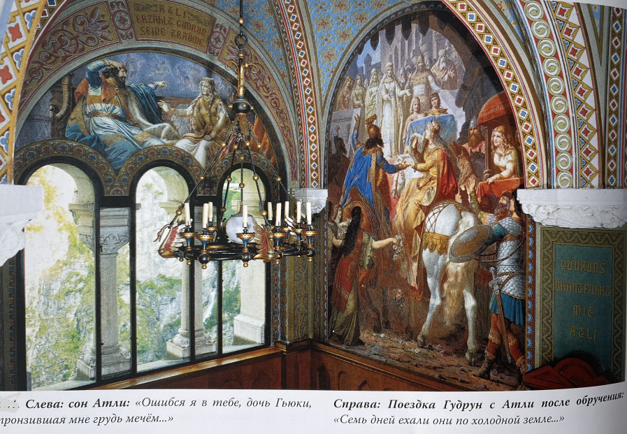Продолжение этой истории Гудрун и Атиллы на пятом этаже замка НойшваншайН Людвига II Баварского, на восьми полотнах художника Вильгельма Хаусшильда.