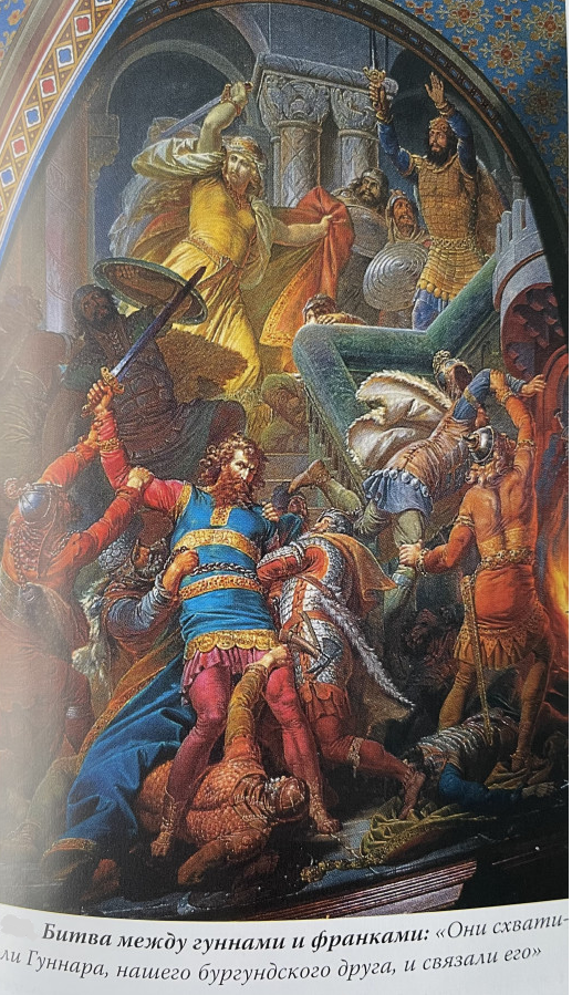 Битва гуннов и франков - на картине битвы Аттилы и братьев Гудрун.