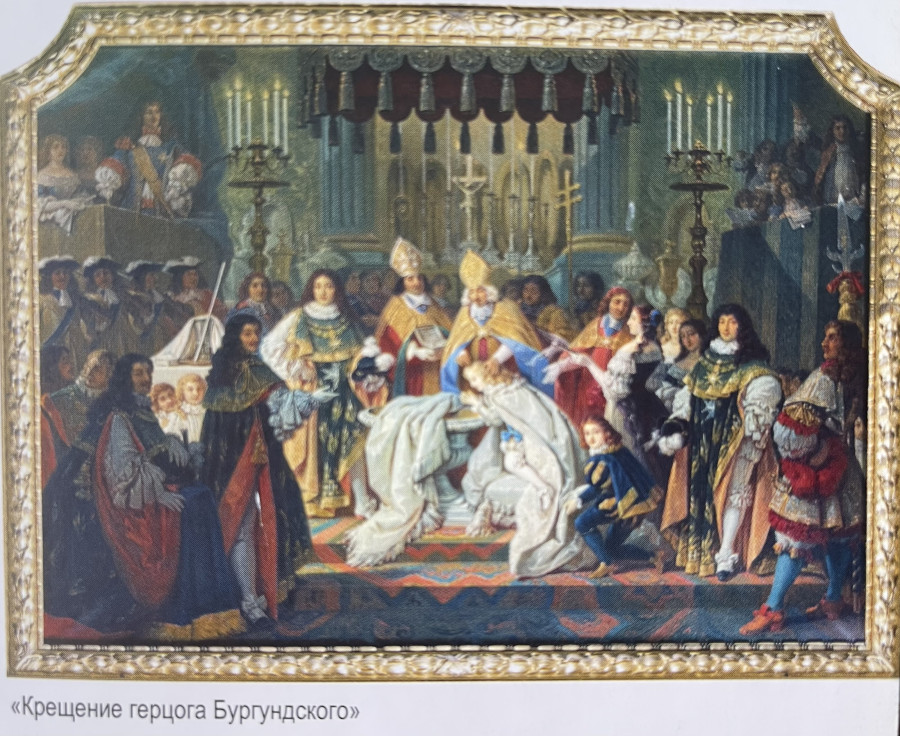 В замке Херренкимзее - в копии французского Версаля у короля Лебедя Людвига II Баварского изображены на картинах король Франции Людовик XIV , король Франции Людовик XV и крещение герцога Бургундского, старшего внука короля Франции Людовика XV, который должен был стать Людовиком XVI, но умер в 9 лет. Людовиком XVI стал его младший брат.