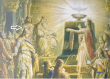 Но Людвиг II Баварский христианин, повторю это . У него несколько раз проходит тема крещения. Крещение Хлодвига I. Крещение Герцога Бургундского. То есть , крещение короля франков и внука короля Франции Людовика XVI. Людвиг II Баварский копирует в замке Херренкимзее «Бычий салон» Версаля, «названный так из-за овального окна в зале, который служил помещением для крещения принцев. Баварский король сделал этот зал больше, чем версальский. Роспись по потолку «Аллегория зари» воспевает день и ночь»