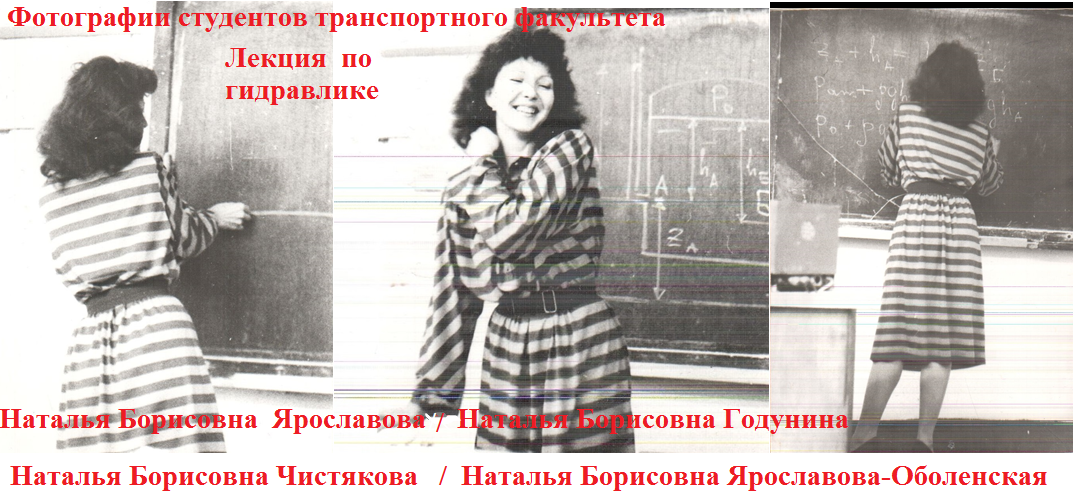 ©Ярославова-Оболенская Наталья Борисовна (с 10.06.2014), урожденная Ярославова Наталья Борисовна (д.р.22.2.1960). Экс Годунина Наталья Борисовна (23.10.1981-14.4.1991). Экс Чистякова Наталья Борисовна (14.4.1991 -10.06.2014), в т.ч. 18 лет после развода 25.6.1996). Кандидат технических наук c 26.5.1988. Я родилась 22 февраля 1960 года в Нефтекамске, Краснокамского района Башкирской АССР