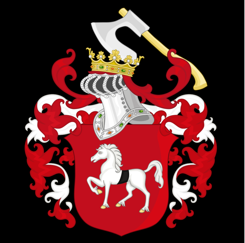 Herb Stary koń «В Гербовнике Анисима Титовича Князева 1785 года имеется изображение печати с гербом бригадира лейб-гвардии Семеновского полка, писателя, Василия Ивановича Майкова (1728—1778): в щите, имеющем красное поле, изображен серебряный конь, обращенный в правую сторону. Щит увенчан дворянским коронованным шлемом, обращенным в правую сторону. Нашлемник — топор. Вместо намёта — бурелет. Девиз на ленте: «НЕ ОСТАНУСЬ».